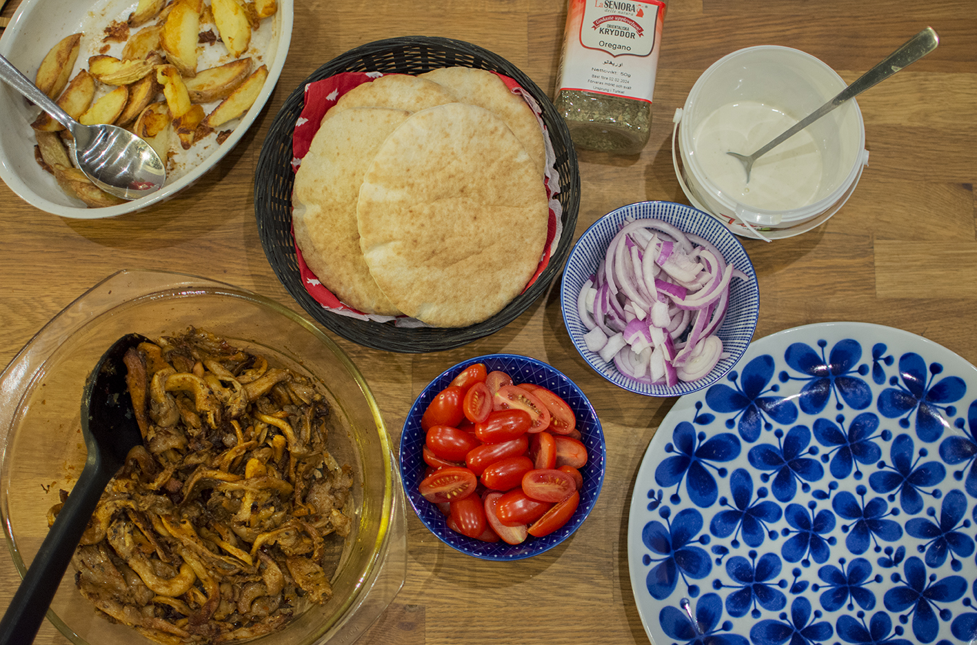 Det blev gyros, Greklands svar på kebab, med ostronskivling som bas i stället för fläskkött. Mycket gott!