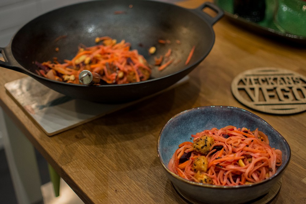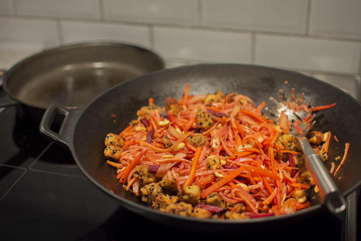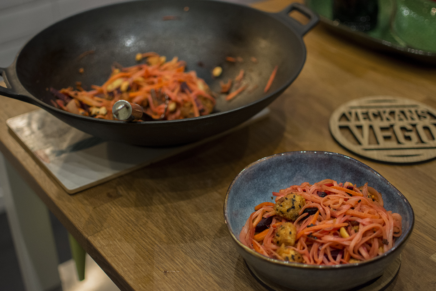 Den där woken ja. Av mitt kylskåpsinnehåll blev det en asiatisk-nordisk fusion. (På ren svenska: med bland annat morötter, palsternacka och rödbeta.)