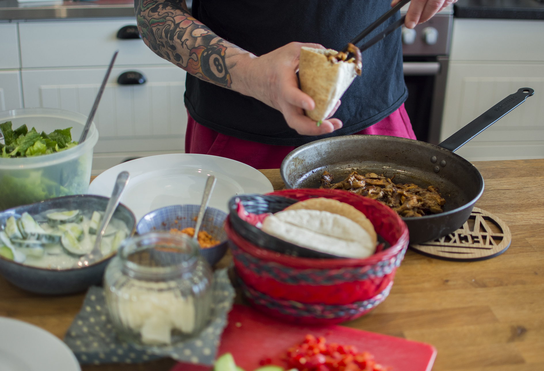 Denna gång en rätt som ska likna shawarma, som i originaltappning lagas med kyckling. Sjukt onödigt, när det blir så här gott med supersvampen ostronskivling.